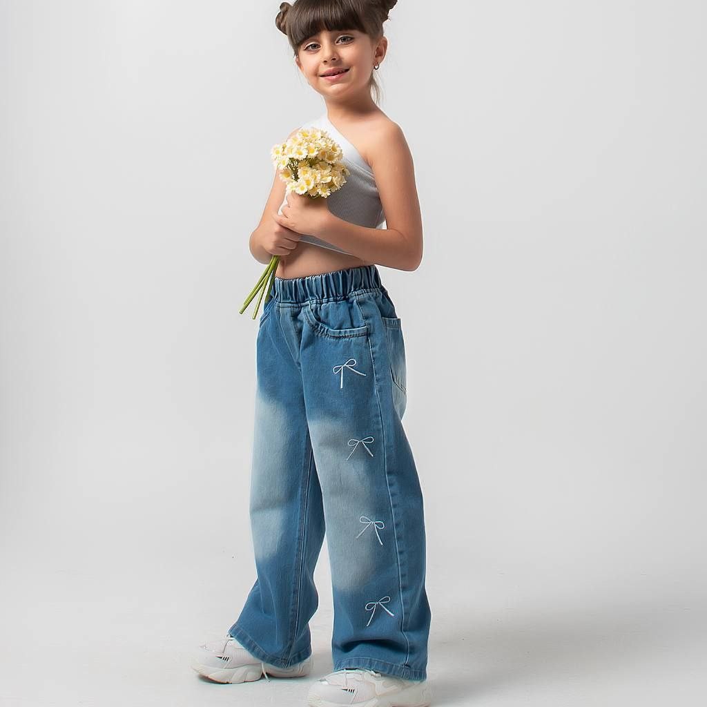 شلوار بگ گلدوزی پاپیون پارچه جین درجه یک وارداتی سایزبندی 80-55